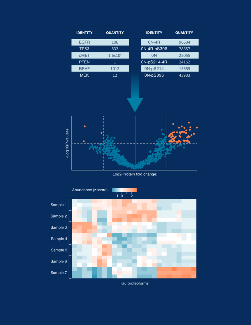 The platform generates a simple output format with protein or proteoform identities and counts. Data can be further analyzed in Nautilus’ cloud portal to derive biological insights.