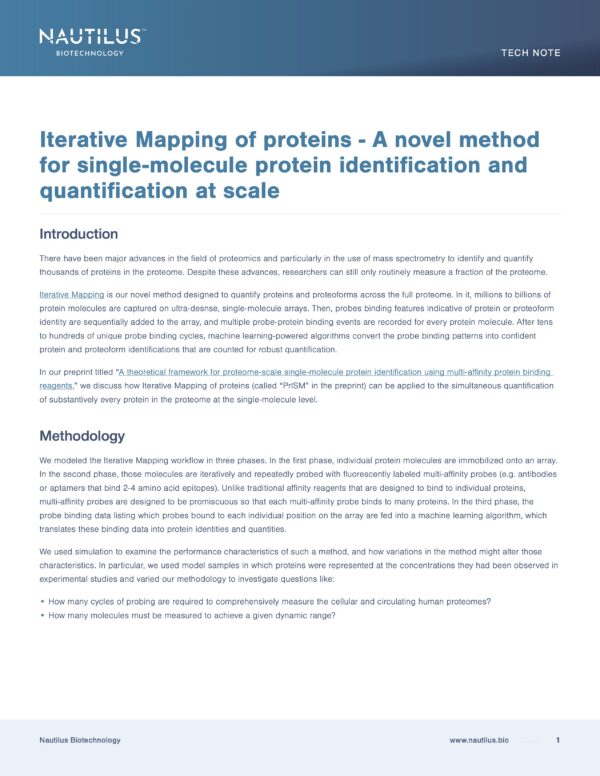 Omics-scale technologies aim to capture all the information contained in full sets of biological molecules like DNA (genomics), RNA (transcriptomics), and proteins (proteomics). Until recently, it was only possible to capture and store the data contained in the genome and transcriptome. While we have learned much about genetic diseases and biological variation from genomics and transcriptomics, DNA and RNA do not reveal the biological functions active in cells now. Proteins, on the other hand, carry out most biological functions, and proteomic technologies can provide robust analyses of active biological functions. Thankfully, we now have the technological capacity to capture, store, and analyze comprehensive proteomic data and thereby generate far deeper insights into biology than ever before. By making a proteomics platform that is accessible to all researchers, Nautilus hopes to enable researchers and physicians to apply proteomic insights to create new diagnostics, medicines, biotechnologies, and more.